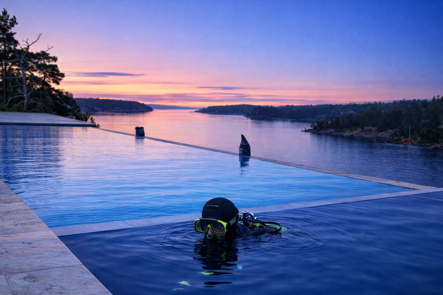 Vi är en av få firmor i Stockholmsområdet med egna dykare. Det betyder att vi kan reparera kakel, mosaik, lampor och läckage under ytan — utan att tömma poolen. Det sparar tid, vatten och pengar.